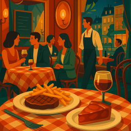 Delicious and a great French vibe. The best steak frites Iโve ever had and the best one in Paris hands down. Definitely make sure you have a ressie. Itโs a must.
