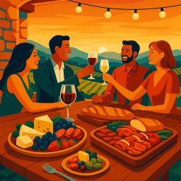 * Peter can now enjoy the dinner with his friends at Bluemont Vineyard!