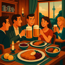 * Peter can now enjoy the dinner with his friends at Buschbeck's Restaurant Berlin!