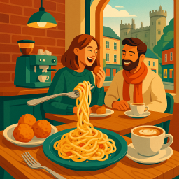 * Peter can now enjoy the dinner with his friends at Caffé500 Kilkenny!