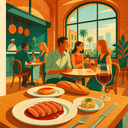 The food is somewhat unique (at least the way it was described) but far from being great. The service was very, very slow. The waiter oversold the dishes and so when we got to eat them they were a disappointment. Ambiance is OK. Not too different fr