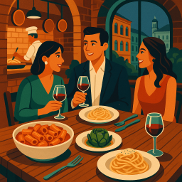 * Peter can now enjoy the dinner with his friends at FELICE A TESTACCIO MILANO!