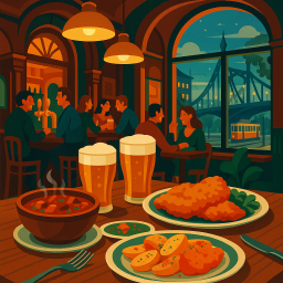 Let's say Peter has a great morning and decides to take his three friends to for sale pub Vámház körút Budapest at 6 PM the same day.