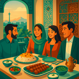 * Peter can now enjoy the dinner with his friends at Gilaneh Restaurant Tehran!