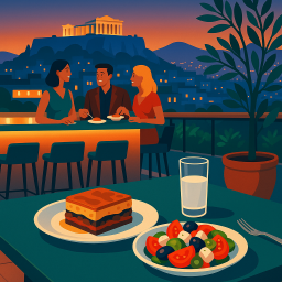 Let's say Peter has a great morning and decides to take his three friends to Hytra Restaurant & Bar Athina at 6 PM the same day.