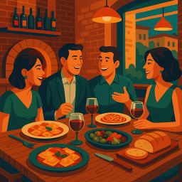 * Peter can now enjoy the dinner with his friends at Il Ombu Trattoria Italiana Buenos Aires!