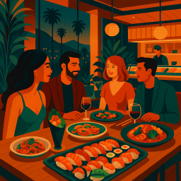 Let's say Peter has a great morning and decides to take his three friends to KinKan LA Los Angeles at 6 PM the same day.
