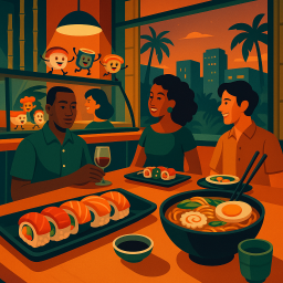 * Peter can now enjoy the dinner with his friends at Kōzo Restaurant Accra!