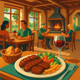 * Peter can now enjoy the dinner with his friends at La cabane Bessines!