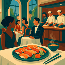 The location by itself is exceptional in the heart of Paris: large space, parking on the spot, in a prime location. The dining at the counter is a surprising experience but overall very positive. The menu offers a perfect balance btwn 2 cuisines, w