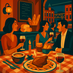 * Peter can now enjoy the dinner with his friends at Le Bouchon Chicago!