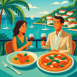 * Peter can now enjoy the dinner with his friends at L'Isola Gustavia!