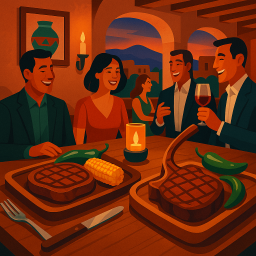 Let's say Peter has a great morning and decides to take his three friends to Market Steer Steakhouse Santa Fe at 6 PM the same day.