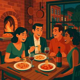 * Peter can now enjoy the dinner with his friends at Mothers & Sons Trattoria Durham!