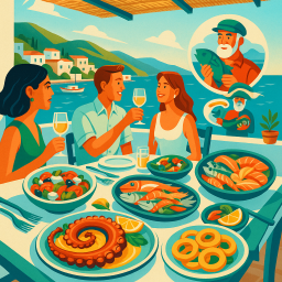 * Peter can now enjoy the dinner with his friends at Mylos By The Sea Agia Marina!