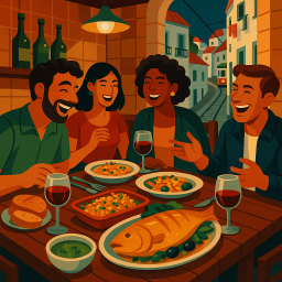 * Peter can now enjoy the dinner with his friends at O Velho Eurico Lisboa!