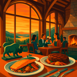 This is Big Cedar’s top restaurant. It is very expensive. Salmon $58. Rotisserie chicken $46. Sides extra. Limited wine selection $16-$28 per glass. Special was a bone in steak for $125. So I expected more. People were not dressed up. The hostess
