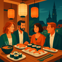 * Peter can now enjoy the dinner with his friends at Osaka Sushi Antwerpen!