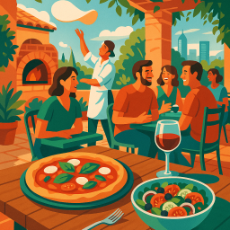 * Peter can now enjoy the dinner with his friends at Pizza Jardin Alcobendas!