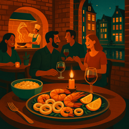 * Peter can now enjoy the dinner with his friends at restaurant calisto Amsterdam!