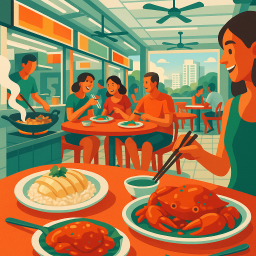 Let's say Peter has a great morning and decides to take his three friends to Restaurant Singapore at 6 PM the same day.