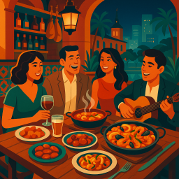 * Peter can now enjoy the dinner with his friends at Restaurante Taberna española Douala!