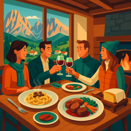 * Peter can now enjoy the dinner with his friends at Ristorante Malga Panna!