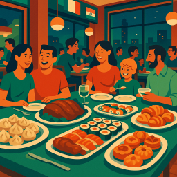 * Peter can now enjoy the dinner with his friends at Saveurs des Continents - Brossard!