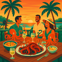 * Peter can now enjoy the dinner with his friends at The Bold Octopus Almancil!