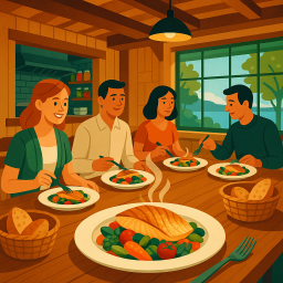 Let's say Peter has a great morning and decides to take his three friends to The Cooks’ House Traverse City at 6 PM the same day.