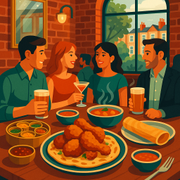 Unpretentious surroundings, friendly staff. Ridiculous prices for small cocktails. Dosa superb, chicken lolipops dry and lamb chops with too much massala overpowering the meat flavour. Currys had 4 small pieces of meat or fish and sauces thin. Overal